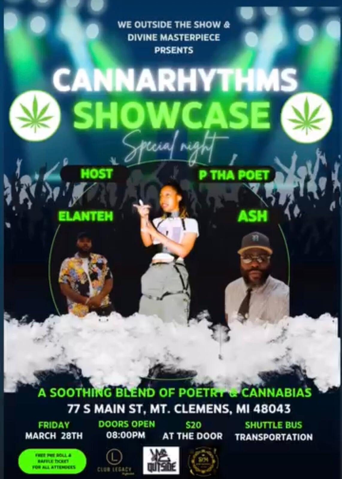 Description: A one-of-a-kind fusion of cannabis culture and spoken word. Cannarythms brings together some of Michigan's top poets for a vibey, elevated experience where creativity flows freely. Expect deep expression, smooth energy, and a unique atmosphere that celebrates both art and culture.